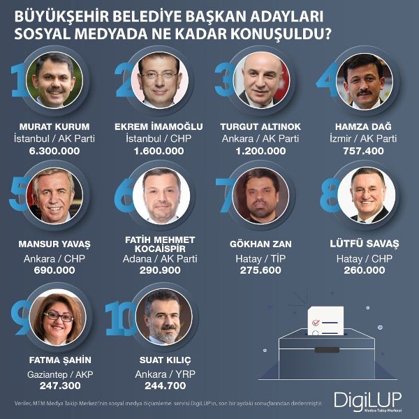MTM’nin, DigiLUP teknolojisi ve uzman kadrosuyla gerçekleştirdiği, Büyükşehir Belediye Başkan adaylarının sosyal medya yansımalarına dair araştırmanın detayları haberimizde.