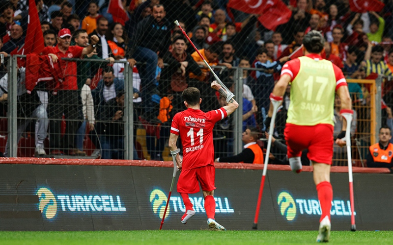 Ay yıldızlı ampute futbolcular, attıkları golden sonra asker selamı verdi.