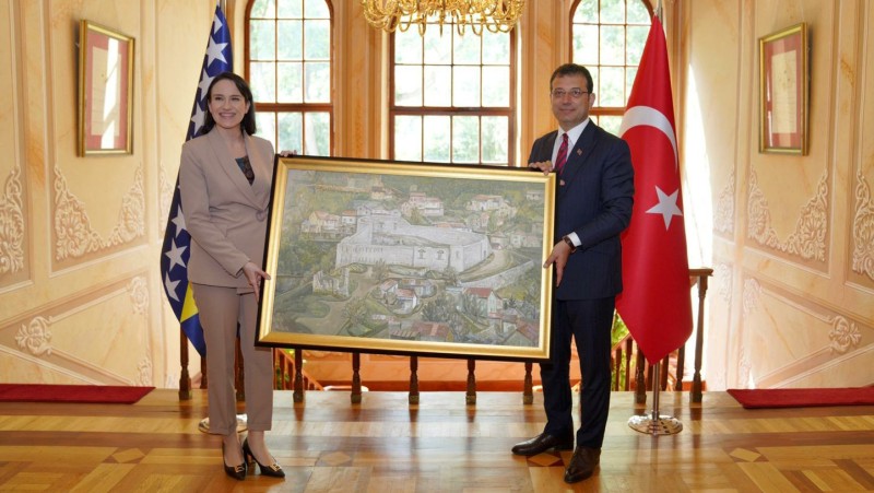 İBB Başkanı Ekrem İmamoğlu, Saraybosna Belediye Başkanı Benjamina Karic’i, Emirgan’daki Beyaz Köşk’te ağırladı. İmamoğlu, kendisinden Saraybosna’nın tarihi yapılarından Osmanlı Kalesi’nin (Bijela Tabija) restorasyonu için destek talebinde bulunan Karic’e, “Kale restorasyonu ile ilgili bahsettiğiniz süreci arkadaşlarımdan dinleyeceğim. Nasıl bir aksiyon almamız gerektiğine hızlıca karar vereceğim” yanıtını verdi. Karic, İmamoğlu’na, Bijela Tabija’nın resmedildiği bir tablo hediye etti.
