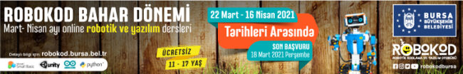 Bursa Büyükşehir Belediyesi’nin çocukların bilim ve teknolojiyi sevmeleri, teknolojiyi sadece tüketen değil, aynı zamanda üreten bireyler haline gelmeleri için başlattığı ‘Robokod Robotik Yazılım ve Kodlama online bahar dönemi eğitimleri 22 Mart’ta başlıyor.