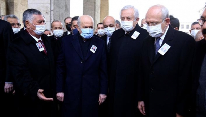 Öte yandan, cenaze sırasında Devlet Bahçeli arka tarafta durunca Kemal Kılıçdaroğlu, Bahçeli’nin öne gelmesini ve Bahçeli’ye yer verilmesini istedi. Bahçeli, davete icabet ederek ön safta yer aldı.