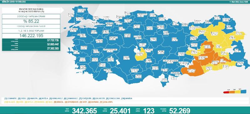İşte 11 Mart 2022 Cuma tarihli corona vaka ve vefat veri tablosu:
