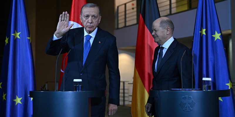 Cumhurbaşkanı Recep Tayyip Erdoğan, Almanya Başbakanı Olaf Scholz ile baş başa görüşme ve heyetler arası çalışma yemeği öncesinde ortak basın toplantısı düzenledi.