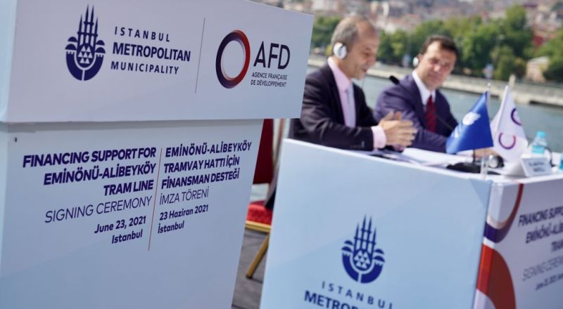 İBB ile Fransız Kalkınma Bankası arasında, Eminönü- Alibeyköy Tramvay Hattı projesinde kullanılmak üzere, 93 milyon Euro’luk ön protokol imzalandı. “Ulusal ve uluslararası piyasalara kıyasla çok uygun maliyetle sağladığımız bu finansman; 2 yıl geri ödemesiz ve 10 yıl geri ödemeli olmak üzere, toplam 12 yıl vadeli” bilgilerini paylaşan İmamoğlu, elde ettikleri başarının şeffaf ve akılcı yönetim anlayışının ürünü olduğunu vurguladı. İmamoğlu, hattın Cibali-Eminönü arasında kalan kısmını, Aralık 2022’de açacaklarının müjdesini verdi. Sağlanacak kredi ile 20 tren alınacak ve hattın kalan 1.1 kilometresi tamamlanacak.
