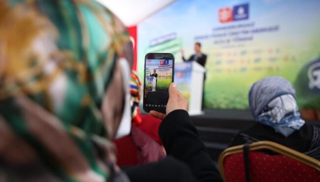 “Bu, bir örnektir. Bir büyükşehirde, böyle bir işe kuvvet verirseniz, önem verirseniz, gideceği noktayı gösterir. Annem de sizin gibi çiftçiydi. Onun o üretkenliği, çalışkanlığı bana birazcık değse, bana yeter. O kadar kıymetli. Minnet duyuyorum. Bütün annelerimize buradan selamlarımızı gönderiyorum, ellerinden öpüyorum. Hele hele çiftçilik yapan, tarımla uğraşan, üreten, tezgahta üreten kadınlara minnet duyuyorum. Burada gerçekten kadınlara dönük bu etkinliğimiz, müthiş bir moral kattı bize. En zor koşullarda, beni koruyan birinci sıra duanın, burada bulunan, bulunmayan kadın üretici vatandaşlarımın, hemşehrilerimin duası olduğuna inanıyorum. İnşallah, hep beraber omuz omuza oluruz, güzel işler üretiriz.”