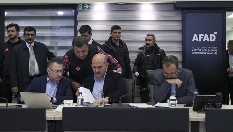Oktay ve bakanlar, çalışmaları AFAD Koordinasyon Merkezi’nde koordine ediyor.