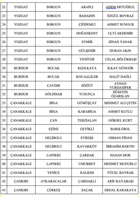 İsmi açıklanan belediye başkan adayları şöyle:
