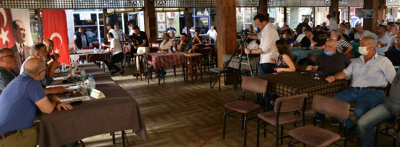 Söyleşi sonunda konuşan Gemlik Belediye Başkanı Mehmet Uğur Sertaslan, Marmara Bölgesi’nde müsilajla ilgili ilk konuşmayı kendisinin yaptığını ve konuşma videosunun 600 binden fazla izlendiğini söyledi. Başkan Sertaslan sözlerine şöyle devam etti: “Başımıza gelen her kötü şey tercihlerimizin yüzünden oluyor. Zengin dediğimiz insanlar, sanayiciler var ya, bizim arkadaşlarımız, akrabalarımız. Yabancı değiller. Bursa’da 12 sanayi bölgesi vardı. 2009 yılında İl Çevre Düzeni çalışmasında 21’e çıktı. Sanayiyi yıktık Marmara’ya, istihdamı yıktık Marmara’ya. Çocuklarımız yüzmeyi havuzda öğreniyor. Tek sorumlusu siyasetçiler değil. Onları da seçenler bizleriz. Elli yıldır, sanayi bölgeleri Nilüfer çayı, Karsak Deresi aracılığıyla arıtmayı çalıştırmasak, çok masraflı deyip, üç kuruş için bu memlekete ihanet edenler bizim insanlarımız. İstanbul’da her gün 4 buçuk milyon metreküp lağım akıyor Marmara’ya. Vicdan sahibi bireyler olarak davranacağız. İmar açarken yedi kat istemeyeceğiz. Orhangazi’de arıtma tesisi için konuşma yapıyorum. Orhangazi’de Karsak Deresi’ne pislik bırakılıyor. Biz uğraşıyoruz. Beni ve Gemlik’te siyaset yapan arkadaşlarımızı ne kadar çok sıkıştırırız sonuca ulaşmak o kadar yakın olur. Biz sahip çıkmazsak, bizim adımıza kimsenin sahip çıkmasını beklemeyin. Yanımızda olun.”