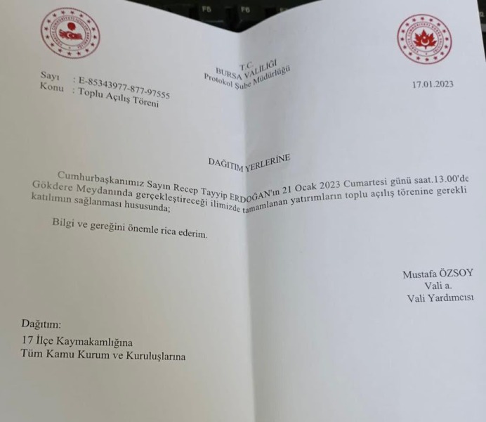 “Yani bu siyasetin yüz karası olan bir şey, bunu kim savunuyorsa oturalım beraber tartışalım. Halk vicdanında nasıl bunu savunacaklar bilemiyorum. Yani bakın aşağıda tüm kamu kurum ve kuruluşlarına diyor, açılış törenine gerekli katılım sağlanması, yani emirdir normalde, üstünde Bursa Valiliği yazıyor. Yani Tapu Kadastrodaki memura bunu gönderiyorsunuz, mitinge gel diyorsunuz, yani bunun izah edilebilir bir yanı yok ki. Çok kısa bir süre kaldı. İktidara geldiğimiz zaman asla buna müsaade etmeyiz.”