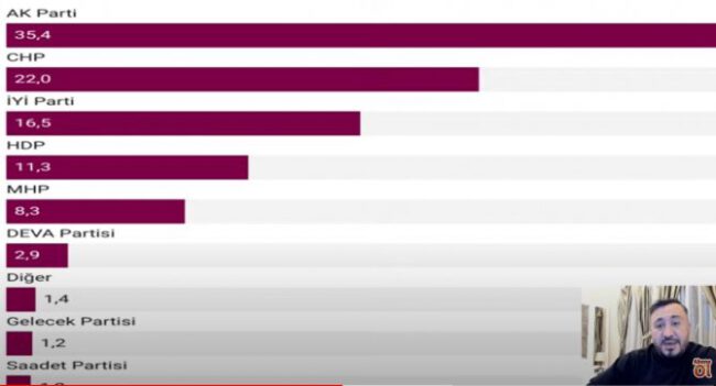 Kemal Özkiraz’ın açıkladığı ankete göre yarın seçim olsa partilerin oy oranı şöyle: