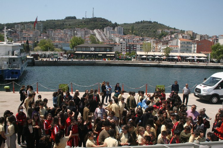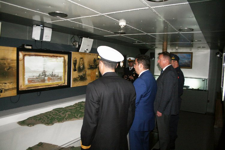 Mudanya İskelesi’nde yoğun olarak öğrenci ve vatandaşların ilgi gösterdiği gemiye, gün boyu ziyaretçiler gruplar halinde alındı. Öğle saatlerinde Mudanya Kaymakamı Ayhan Terzi de Emniyet Müdürü Abdullah Tomar, Jandarma Komutanı Binbaşı Ercan Yavuz, Sahil Güvenlik 25. Bot Komutanlığı Asb. Kd. Bşçvş. İbrahim Emre Yazar ile birlikte gemiyi ziyaret etti.