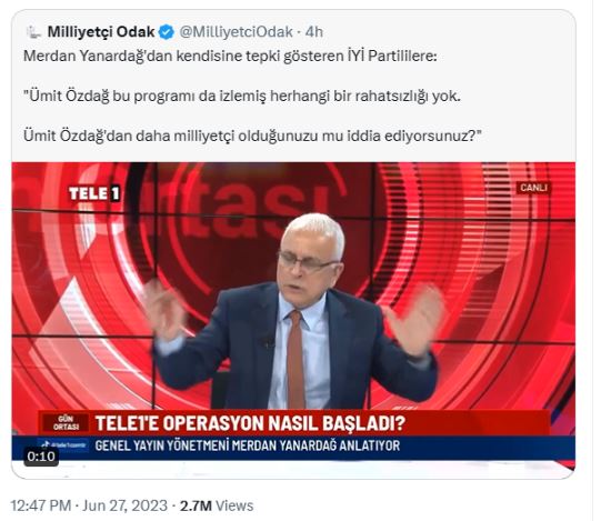 Soruşturma süreci devam ederken, Merdan Yanardağ’dan kendisine tepki gösteren İYİ Partililere “Ümit Özdağ bu programı da izlemiş herhangi bir rahatsızlığı yok. Ümit Özdağ’dan daha milliyetçi olduğunuzu mu iddia ediyorsunuz?” ifadelerini kullanmıştı.