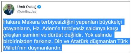 “Hakara Makara terbiyesizliğini yapanları büyükelçi atayanların, Hz. Adem’e terbiyesiz saldırıya karşı çıkışları samimi ve dürüst değildir.